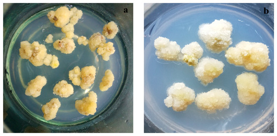 Growth of calluses derived from (a) Huangguan and (b) Xuehua pears.