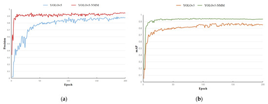 Curve of each performance index of the two models. (a) Precision curve; (b) mAP curve.