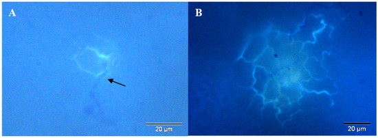 (A) single and (B) multiple fluorescent epidermal cells at penetration site of S. cucurbitacearum in leaves of accession 232-0125/B at 24 and 48 hai, respectively. Arrow: hypha causing penetration.