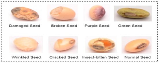 - Sable, A.V.; Singh, P.; Singh, J.; Hedabou, M. A Survey on Soybean Seed Varieties and Defects Identification Using Image Processing. In ACI@ ISIC; CEUR Workshop Proceedings: Milan, Italy, 2021; Volume 3283, pp. 61–69. [Google Scholar]