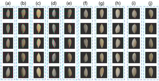 As shown in Table 2, a total of 10,600 rice grains were collected in the experiment. In this experiment, useless images, such as those blurred, damaged, or completely inconsistent with the requirements of the experiment, need to be removed after shooting the grains, which may interfere with the training and evaluation process of the model, resulting in the model learning wrong or irrelevant features. These images not only fail to provide valuable information to the model but may also degrade the performance of the model.