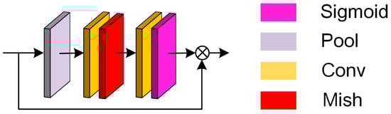 To enhance recognition accuracy in small areas, we prioritize exploring the relationship between feature channels, enabling the network to construct informative features across various image locations. To achieve this, we introduce the SCE block, as depicted in Figure 8, an enhancement inspired by SE Net []. This involves replacing all full connection layers with 1 × 1 convolution layers and substituting the ReLU activation function with the Mish activation function, which effectively emphasizes the relationship between feature channels.