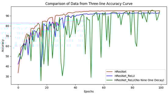 To meticulously investigate the impact of the learning rate adjustment strategy and the Mish activation function within the HResNet architecture, we conducted a comparative analysis by substituting the Mish function with the ReLU function and eliminating the Nine One Decay mechanism. This allowed us to delve into the convergence effects of Mish and Nine One Decay, as well as their capacity to mitigate gradient vanishing issues.