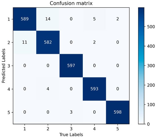 As Figure 15 clearly illustrates, the confusion matrix demonstrates an impressive accuracy rate of 98.7% for the HResNet model in classifying rice grown in five distinct soil categories, indicating its outstanding performance. The high values along the diagonal elements of the matrix signify that the vast majority of samples have been accurately categorized into their respective soil types. This remarkable achievement underscores the superior capability of HResNet in distinguishing rice varieties cultivated under different soil conditions. The relatively low values in the non-diagonal elements indicate that misclassifications are infrequent and, if they occur, their proportion is minimal, having a negligible impact on the overall accuracy of soil classification in rice-producing areas. This further validates the high stability and reliability of the HResNet model. Furthermore, upon careful examination of the confusion matrix, we did not detect any discernible trends of misclassification among rice varieties grown in different soils. This suggests that our model exhibits consistent performance across various production regions and is resilient to potential classification errors that might arise due to similarities between soil types. Consequently, the analysis of the five soil categories for rice production in the confusion matrix confirms that HResNet has achieved exceptional results, not only in terms of high accuracy but also in maintaining stability and balance in its performance.