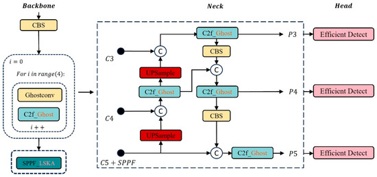 In this paper, based on YOLOv8s, various lightweighting improvement methods were attempted, including replacing its native backbone network with lightweight backbone networks such as Fasternet, EfficientVIT [41], and HGNetV2 [42], using SlimNeck [43] to replace the neck network of YOLOv8s, and using the Ghost Bottleneck module in Ghostnet to replace the Bottleneck module in the C2f module. Performance analysis was conducted on the models that incorporated different improvement methods, and appropriate lightweighting improvement strategies were selected to make the algorithm more easily portable to mobile or embedded devices.