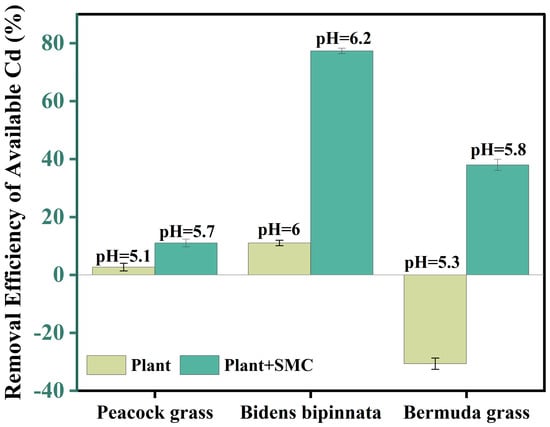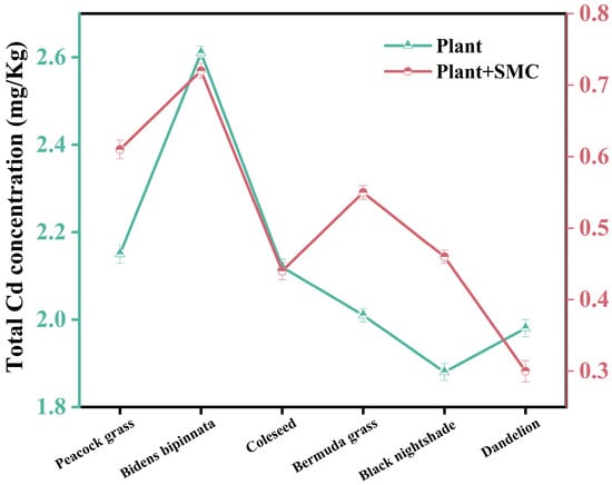 3.3. Remediation Effect of SMC in Cd Contaminated Soil