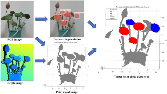 - 3D visualization of the lotus pond scene in the laboratory is performed, and cloud point information on lotus seedpods is produced through the segmentation network, which will be used to reconstruct a 3D map of a working environment and compute a proper grasping pose.