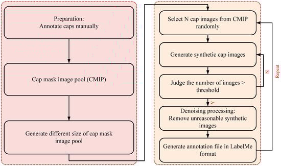 - Denoising processing. As the synthetic image after step (3) sometimes has more than one region, we only maintained the largest region. Finally, combine the synthetic images and the Json file when annotated manually to generate a new Json file, which is suitable for LabelMe.