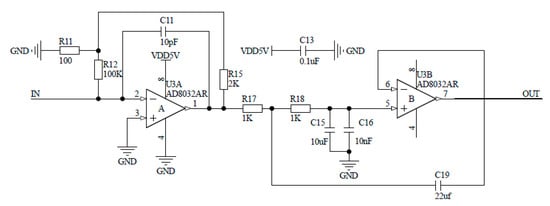 2.2.1. Design of Sensor Signal Amplification and Filtering Buffer Circuit
