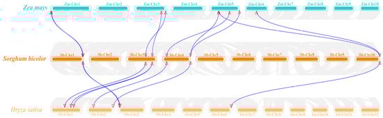- Wang, Y.; Tang, H.; DeBarry, J.D.; Tan, X.; Li, J.; Wang, X.; Lee, T.-h.; Jin, H.; Marler, B.; Guo, H. MCScanX: A toolkit for detection and evolutionary analysis of gene synteny and collinearity. Nucleic Acids Res. 2012, 40, e49. [Google Scholar] [CrossRef] [PubMed]