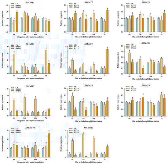 3.7. Transcriptome Analysis of the SbCalS Gene Family Following Aphid Infestation