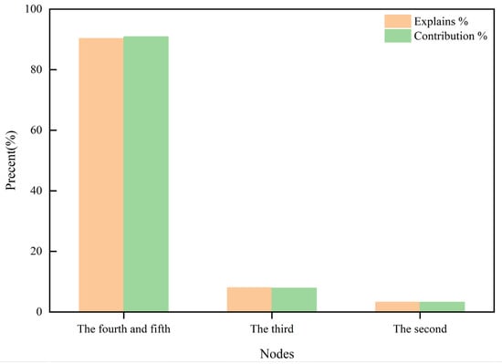 In the current study, the rank-order of the Cd content in each plant part at the same node among the analyzed cultivars was HHZ > LY-121 > YY-4149 (Table 5), which was consistent with the Cd contents in the main and ratoon crops of these cultivars (Figure 1). According to earlier studies, in areas with sufficient temperature and light resources, a short stubble after the harvesting of the main crop may increase the yield of the ratoon crop [40]. However, our analyses revealed that the brown rice Cd content of the ratoon crop of each cultivar was highest at the lower node positions. Moreover, the brown rice Cd contents at the fourth and fifth nodes from the top contributed the most to the total brown rice Cd content of the ratoon crop (Figure 2), indicative of the importance of these nodes for the brown rice Cd content. The explanation rate and contribution rate refer to the proportion of variance explained by each factor to the total variance, which is also directly related to the importance of each factor. The explanation rate of redundancy analysis refers to the proportion of the extracted factors in the total variance. An explanation rate of more than 80% is considered an excellent result. These findings suggest that the axillary buds at the lower nodes germinated the earliest, and the regenerated tillers had sufficient time to absorb and accumulate nutrients as well as Cd. In addition, the lower nodes were closer to the roots than the higher nodes, which may have influenced the transport and accumulation of certain compounds. Therefore, low-stubble ratoon rice plants should be carefully developed in Cd-contaminated rice-growing regions. The stubble height should be maximized while harvesting the main crop to increase the number of high-node spikes in the ratoon crop, thereby decreasing the Cd content of ratoon rice.