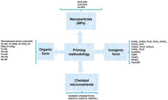 - Mondal, S.; Bose, B. Impact of Micronutrient Seed Priming on Germination, Growth, Development, Nutritional Status and Yield Aspects of Plants. J. Plant Nutr. 2019, 42, 2577–2599. [Google Scholar] [CrossRef]
