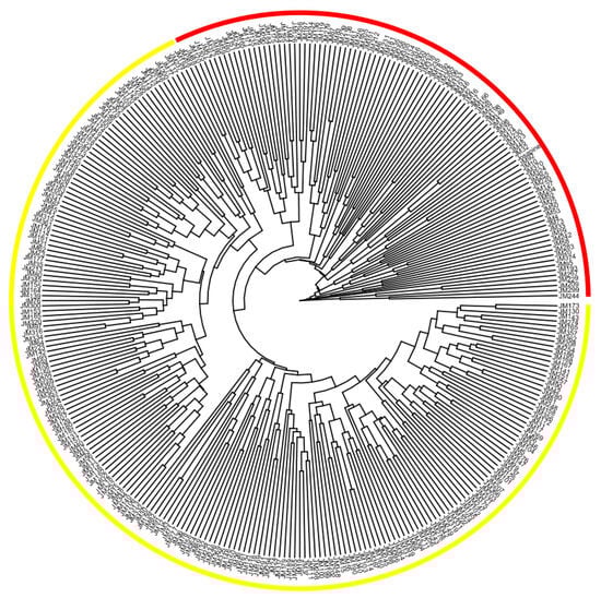 - Kumar, S.; Stecher, G.; Li, M.; Knya, C.; Tamura, K. MEGA X: Molecular evolutionary genetics analysis across computing platforms. Mol. Biol. Evol. 2018, 35, 1547. [Google Scholar] [CrossRef]
