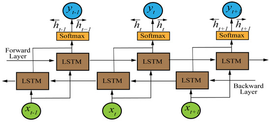 BiLSTM (Figure 6) is an extended version of LSTM, but also includes two LSTM networks that work in both forward and backward directions at each time step. This bi-directional architecture provides a more comprehensive context by taking into account past and future information. This increases the capacity of BiLSTM to learn general representations more effectively [41].