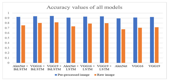 This study employed the AlexNet, VGG16, and VGG19 deep learning methods, each with three different depths and parameters. A comparative analysis of these methods was conducted alongside LSTM and BiLSTM hybrid models. The images utilized in this study underwent classification by a total of nine distinct deep learning methods, using both raw and pre-processed formats. The block diagram illustrating the study is presented in Figure 1.