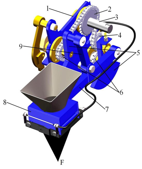 - Sun, W.; Zhang, H.; Simionescu, P.A. Numerical optimization and experimental validation of a five-link mechanism, potato planter. Proc. Inst. Mech. Eng. Part C J. Mech. Eng. Sci. 2021, 235, 6883–6892. [Google Scholar] [CrossRef]