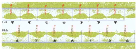 To clarify the uniformity of soil coverage and the quality attributes of the soil piles, the GridBinGroup function in post-processing is used to establish a grid on both sides, as shown in the figure, and to count the quality attributes in each grid, as shown in Table 2. From Table 2 and Figure 18, it can be seen that the quality of the soil piles on the same side does not differ much, but there is a slight difference in the quality of the soil piles on the left and right sides. Therefore, the next step should be to optimize the consistency of soil collection and topsoil coverage on both sides in order to improve the overall topsoil coverage effect.