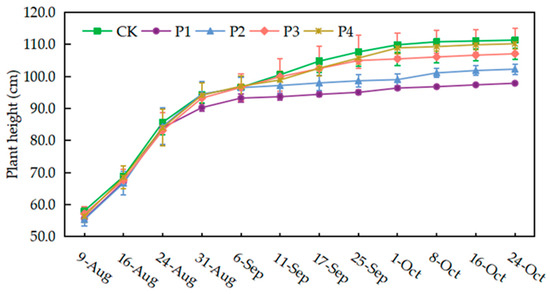 Plant height dynamics under different treatments. The data represent the means ± standard deviation of ten separate samples.