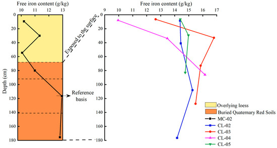 Variation characteristics of free iron content in Quaternary red soils with profile depth.