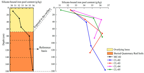 Variation characteristics of silicate-bound iron pool content in Quaternary red soils with profile depth.