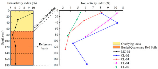 Variation characteristics of iron activity index in Quaternary red soils with profile depth.