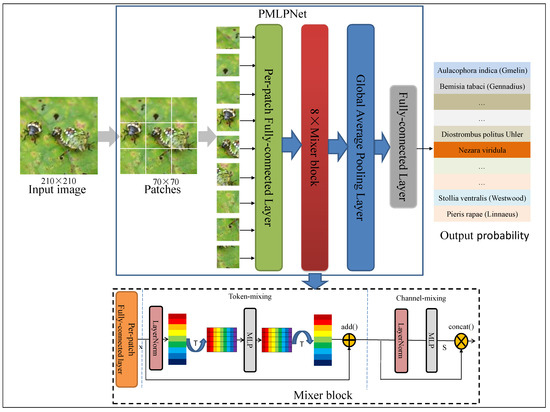 - PMLPNet is proposed for multi-class pest classification, which integrates local and global contextual semantic features by designed token- and channel-mixing MLP structures.