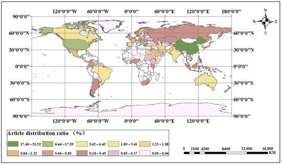 The distribution of articles related to DIPM across various countries around the world.