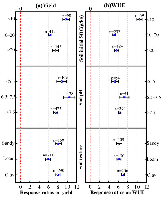 The initial properties of the soil (soil texture, soil pH, and soil organic matter content) significantly affect the impact of straw incorporation on maize yield and water use efficiency (Figure 4).