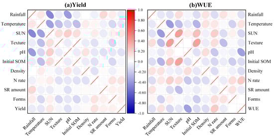 Moreover, the results of the relative importance of variables indicate that climatic conditions have a significant impact on crop yield and water use efficiency during straw incorporation (Figure 7). Therefore, providing adequate soil moisture, temperature, and sunlight during straw incorporation is crucial for enhancing crop yield and water use efficiency [39].