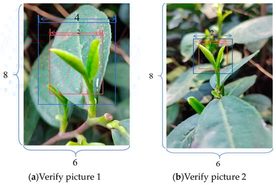 Figure 5 shows the case in which the side length ratio of the real frame and predicted frame is the same but the size is different. As shown in Figure 5a, the picture width is 6 cm, the height is 8 cm, and the height and width of the prediction box are 4 cm, and the height and width of the real box are 1 cm. As shown in Figure 5b, the picture width is 6 cm, the height and width of the prediction box are 2 cm, and the height and width of the real box are 1 cm. To show that the mpdiou of this study works better than the current best loss function in this case, the researchers calculated and of Figure 5 to obtain the following Table 2.