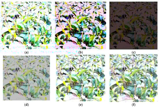 In this study, the preprocessing of intense light images was performed from three aspects: contrast adjustment, hue value adjustment, and gamma value adjustment. The brightness contrast [] of the image was adjusted based on the linear transformation of the grayscale of the image, as shown in Equation (11).