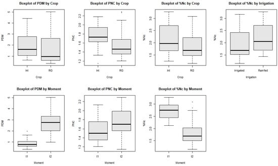 | PDM (t ha−1) | PNC (%) | NUp (kg ha−1) | NUpE (%) | NUE (kg kg N ha−1) | %Nc (%) | NNI | |