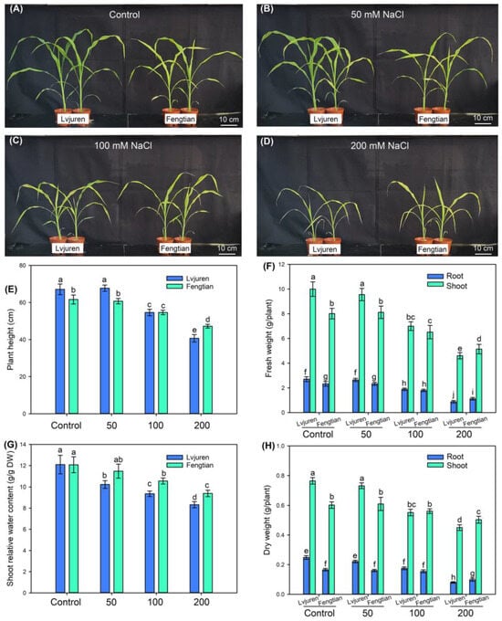 3.1. Effects of NaCl Treatments on the Growth of Sweet Sorghum Cultivars
