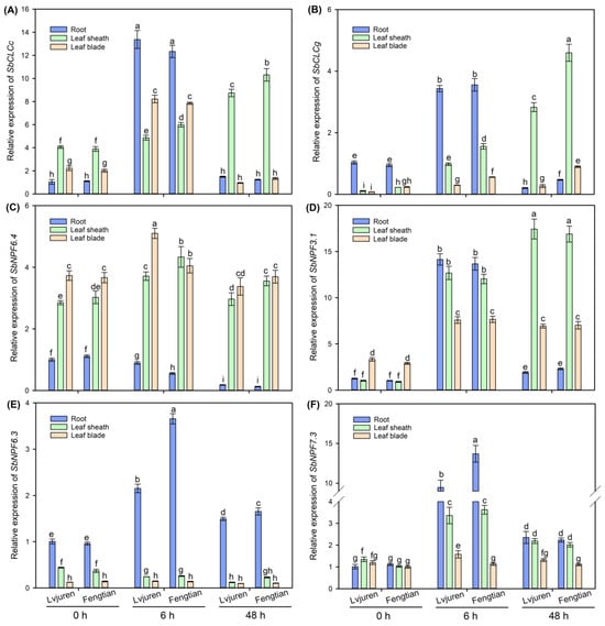3.7. The Expressions of Key Genes Related to Cl− and NO3− Transport in Sweet Sorghum under NaCl Treatment