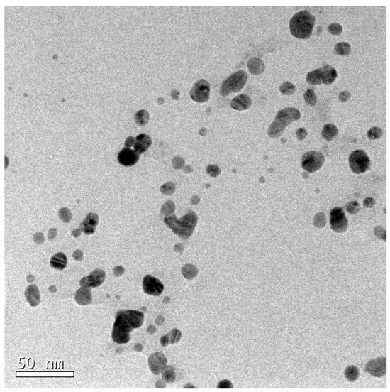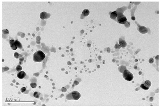 TEM image of AgNPs synthesized via the reaction of Gallic acid with AgNO3.