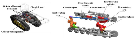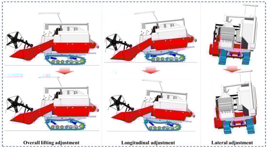 - Hu, J.P.; Pan, J.H.; Dai, B.W.; Chai, X.Y.; Sun, Y.X.; Xu, L.Z. Development of an attitude adjustment crawler chassis for combine harvester and Experiment of adaptive leveling system. Agronomy 2022, 12, 717. [Google Scholar] [CrossRef]