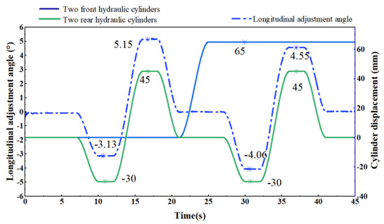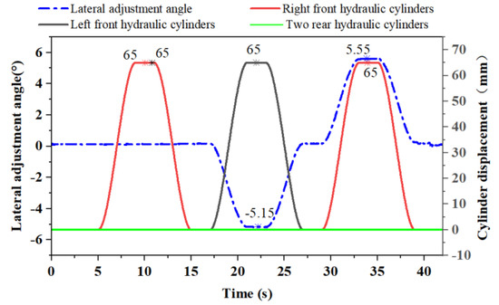 - The bidirectional coupling simulation model of DEM and FMBD enables the completion of overall lifting, lateral adjustment, longitudinal adjustment, and field-ridge adjustment actions on complex terrain. The displacement and tilt angle deviation of the oil cylinder were all within 5%, maintaining a good consistency with the physical prototype.