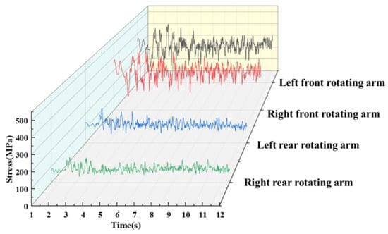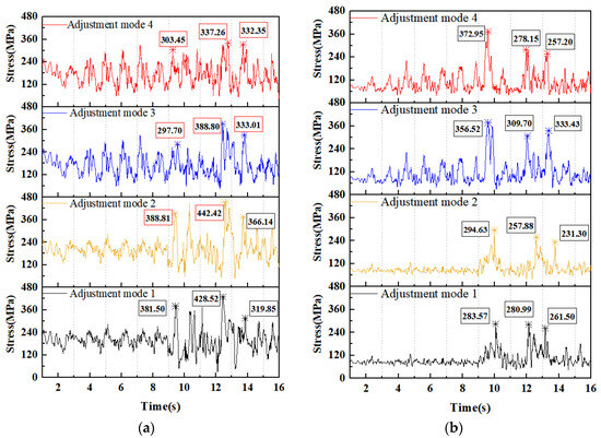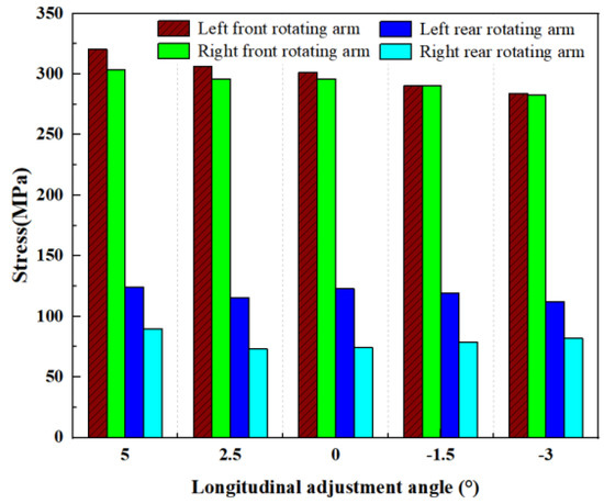 3.2. Influence of the Longitudinal Adjustment Angle on the Dynamic Stress