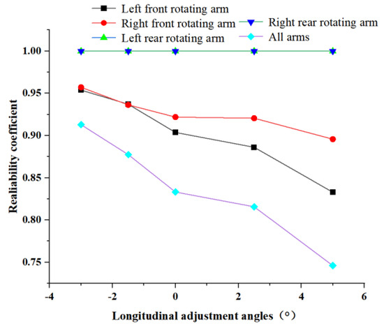 - During the overall lifting, the maximum dynamic stress of the adjustment mechanism decreased as the chassis height increased, leading to improved overall reliability. In longitudinal adjustment conditions, the maximum stress of the left-front rotating arm increased with the inclination angle, and the overall reliability of the chassis reached its lowest level in the longitudinal forward tilt attitude. Lateral adjustment, by adjusting the left and right tilts, can reduce the extreme dynamic stress of the adjustment mechanism, thereby enhancing the overall reliability of the chassis.