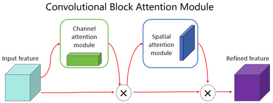 Figure 6 and is divided into two distinct components: the channel attention mechanism and the spatial attention mechanism. In addition to the reduction in computational parameters, the integration of these parameters into the network architecture was also facilitated through the use of switches. The channel attention mechanism performed average pooling and maximum pooling on the input feature layer, and the results of the two processes were multiplied by the activation function with the original input features to output a weighted channel feature map. The spatial attention mechanism involved the computation of the maximum and average values of the feature points on the input feature layer. These values were then convolved to produce the spatial feature map, which was subsequently multiplied by the weighted channel feature map to generate the final output feature map.