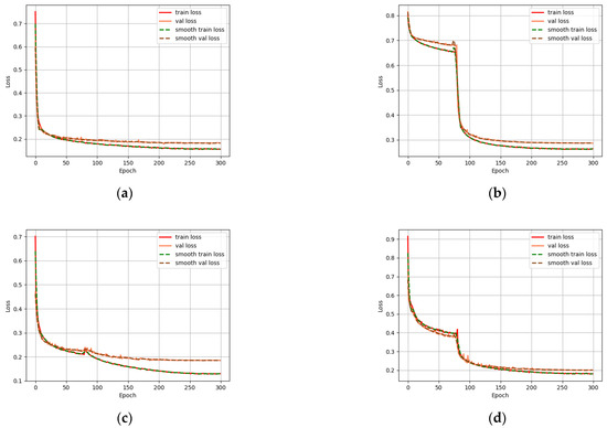 The model training and testing in this study was performed using the Pytorch (version 2.0.1) framework based on Windows 11 and the Anaconda environment. The experimental platform was configured with an Intel (R) Core (TM) i7-12700H processor (CPU, Intel, Santa Clara, CA, USA), an NVIDIA GeForce RTX 3080Ti graphics processing unit (GPU, NVIDIA, Santa Clara, CA, USA), and 32 GB of memory (RAM). The training process followed a predefined ratio of training to validation sets established during data acquisition, involving two categories (including oilseed rape crop rows and background). The platform performed image extraction of collected video streaming files of oilseed rape dataset. The image input network resolution was standardized from 1280 × 720 pixels to 512 × 512 pixels to align with the backbone network’s input feature layer.