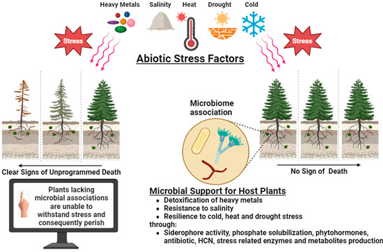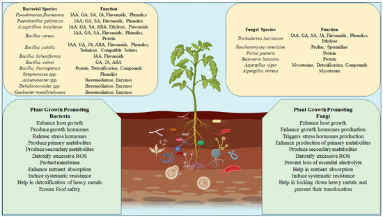 - Sagar, L.; Singh, S.; Sharma, A.; Maitra, S.; Attri, M.; Sahoo, R.K.; Ghasil, B.P.; Shankar, T.; Gaikwad, D.J.; Sairam, M. Role of soil microbes against abiotic stresses induced oxidative stresses in plants. In Microbial Symbionts and Plant Health: Trends and Applications for Changing Climate; Springer: Singapore, 2023; pp. 149–177. [Google Scholar]