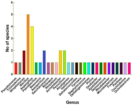 | 17 | Enterobacter spp. | Heavy metals, organic pollutants | [145] |