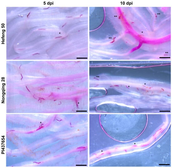 Zhou, C.; Hu, Y.; Han, Y.; Chen, G.; Liu, B.; Yu, J.; Wu, Y.; Li, J.; Ma, L.; Wei, J. Resistance Analysis of a Soybean Cultivar, Nongqing 28 against Soybean Cyst Nematode, Heterodera glycines Ichinohe 1952. Agronomy 2024, 14, 1964. https://doi.org/10.3390/agronomy14091964