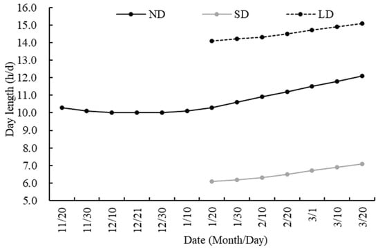 ND: natural daylight, SD: short daylight, and LD: long daylight.