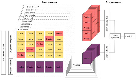 The precise steps of the SMC inversion algorithm are as follows: (1) The initial dataset is proportionally split into training and test sets. (2) Five-fold cross-validation is applied to each base learner. One copy is used as the test set, and the remainder is used as the training set for each base learner. Then, the prediction results of all base learners are taken as the training set for the meta-learner. (3) A new test set is created by averaging the prediction results using the previous test set and the base learner. (4) To obtain the final prediction results, the new training set and the new test set are fed into the meta-learner for training.