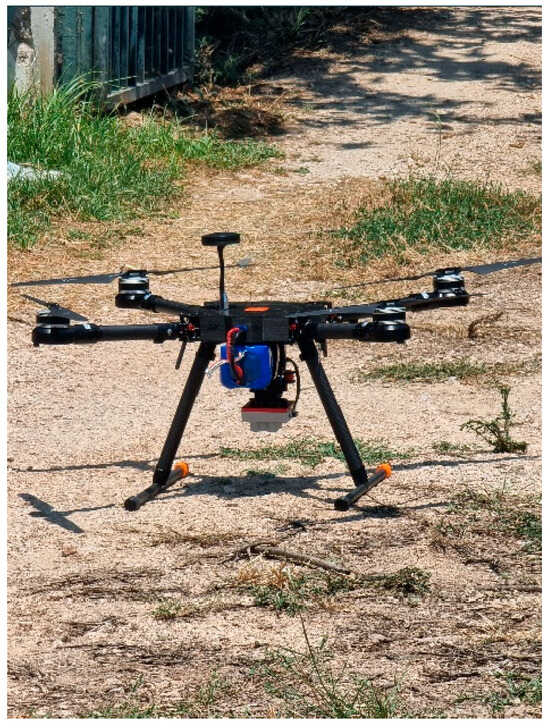 Quadcopter “Mera” (UcanDrone S.A., Koropi Attica, Greece) with the attached multispectral camera, MicaSense RedEdge MX (AgEagle Aerial Systems Inc., Wichita, KS, USA).
