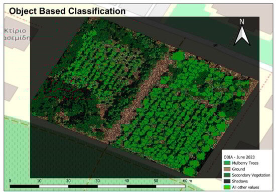 Classified output of the Object-Based Classification for the airborne data of the 28 June 2023 flight.