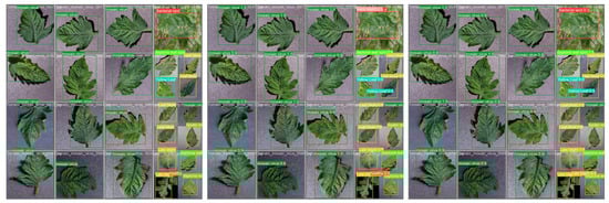 It can be seen that the recognition rate of tomato leaf diseases other than Early blight and Yellow leaf curl virus improved, and the data analysis of the background item revealed that the improved label-matching strategy effectively reduced the leakage rate of various leaf diseases.